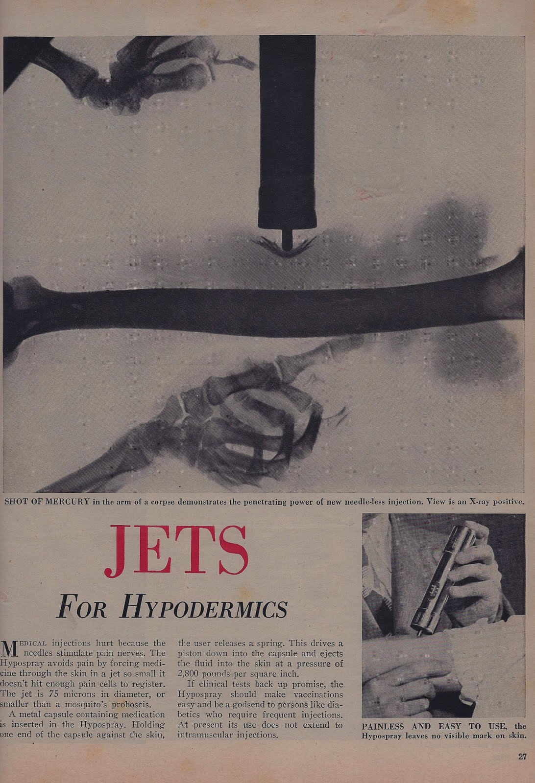 But that still doesn't get us to this marvel of 1947. Apparently, the U.S. Department of Defense stopped using the jet injector in 1997 due to concerns about infection. But this still isn't exactly the original Hypospray, which, according to Science Illustrated, was just right around the corner.